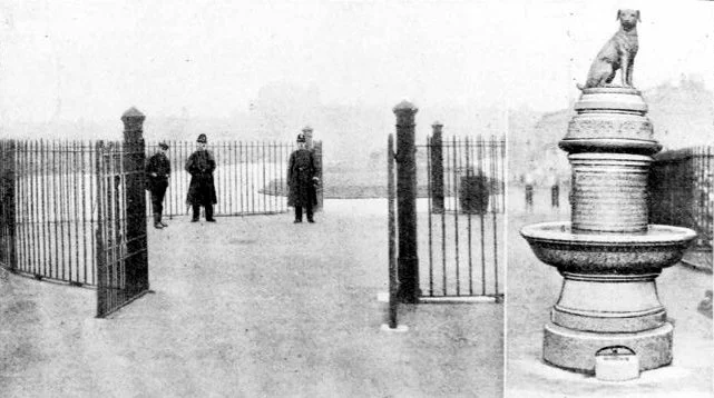 The Rec (as it is usually known) may be one of Battersea’s smaller parks, but it has a notable history. It was laid out on the remains of Latchmere Common in 1906 as the centrepiece of the radical Borough of Battersea's pioneering municipal housing scheme, the Latchmere Estate. Then in 1907 it acquired Brown Dog, an anti-vivisection memorial and drinking fountain so controversial that it generated riots, and attracted national press coverage. It had its own police guard until March 1910, when it was silently removed again overnight by the council, following a change of administration. The two press photos above are our best record of the original layout of the park. To the right, we see the vanished memorial itself, and behind it the railed central footpath which runs North-South through the Rec, closed off to vehicles by tall iron bollards (a much better-looking solution than the current clumsy safety barriers). To the left, we see the empty memorial site at its centre, a shot evidently taken from within what is now the playground. Beyond the memorial site is visible the Eastern section of the Rec, whose landscaping apparently consisted solely of one large, slightly raised central bed (empty of flowers, in early March), surrounded by a compacted surface and perhaps with some kind of hedging growing up inside the perimeter. Happily, most of the original ironwork shown is still there—four sets of double entrance gates (there are two separate designs, distinguishing the Eastern and Western sections), all bar one of the decorative posts, and quite a few lengths of the rather fearsome-looking spiked railings; others have been replaced with a flimsier flat-topped modern design. But by now it's distinctly decrepit, so we very much welcome the idea of restoring it within the improvements; this will be an expensive project, however.